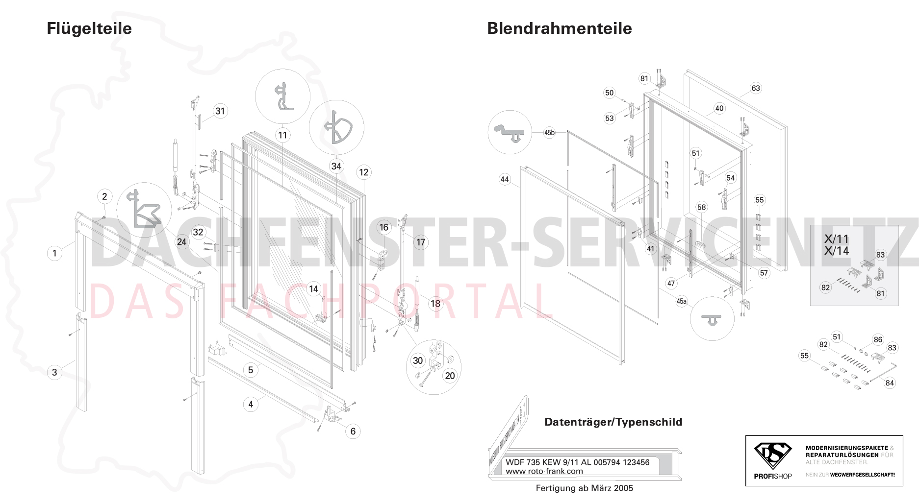 Roto Top-Schwing Dachfenster 7er Dichtungs-Set Innen - NEUE Version - ZUR SELBSTMONTAGE.